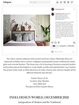 Our work has been featured on multiple design magazines, journals and portals and have been recipient of multiple awards and accolades. The experience so far has been exciting, fulfilling and gratifying and we wish to give more back to the people through our design.